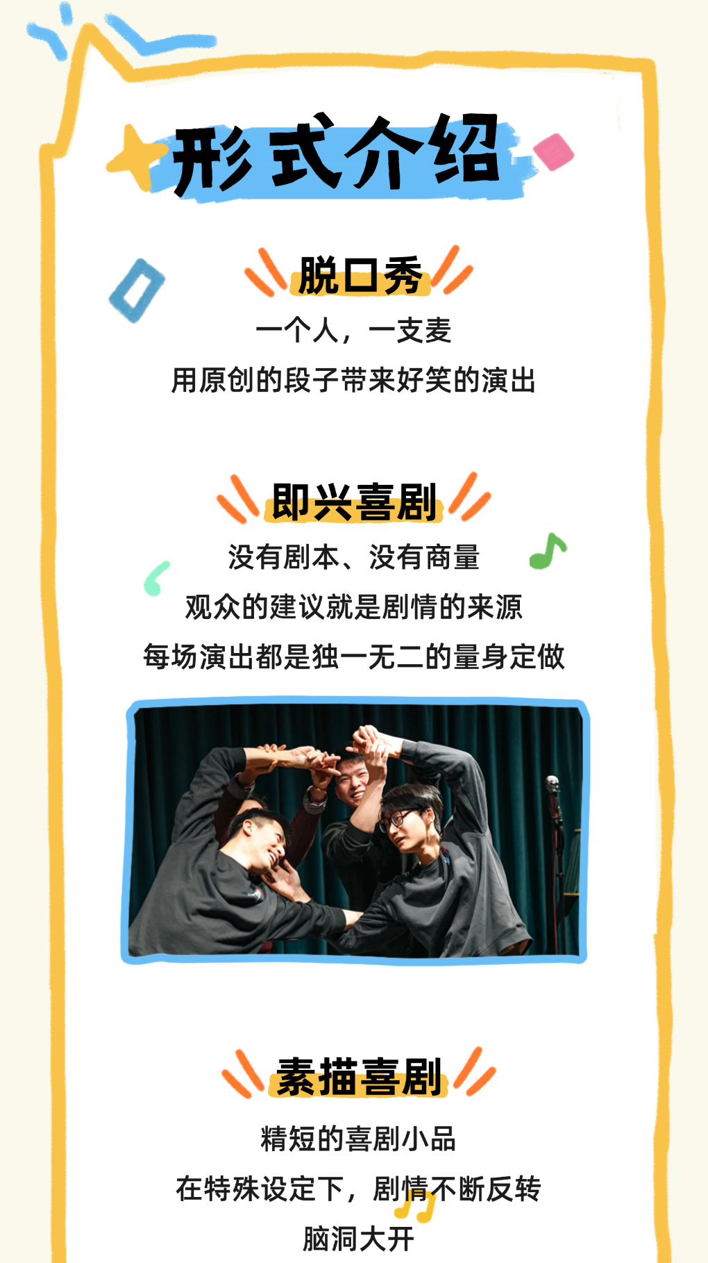 周三为脱口秀主场,周四为即兴喜剧主场,更多演出形式随机降落