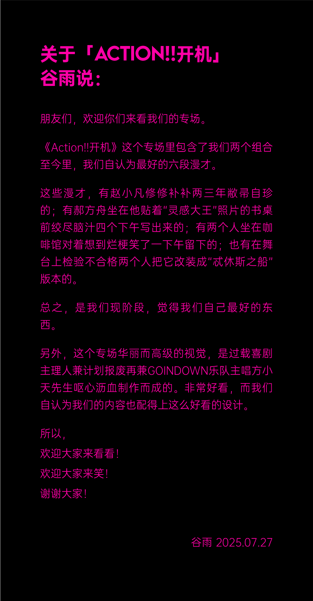 请您务必遵照医嘱,结合病史及个人身体状况进行观演,观演期间请自行承担身体健康相关责任。