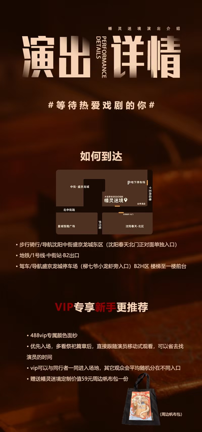 演出地址:沈阳中街盛京龙城东区负一层(沈阳春天北门斜对面幡灵迷境)